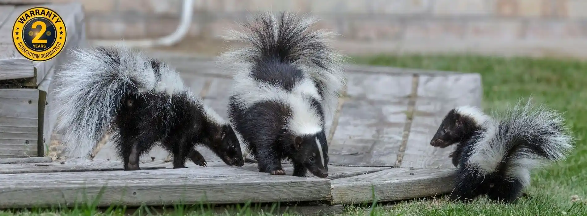 If you have been seeing skunks in the yard, there is probably a den nearby. Skunks are known to dig under porches, decks, and sheds for shelter. We offer permanent solutions to all skunk problems. Our skunk removal services are humane and come with a 2-year warranty.